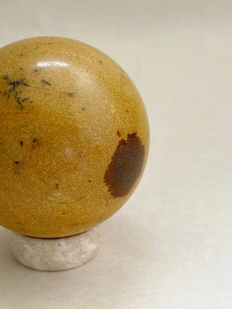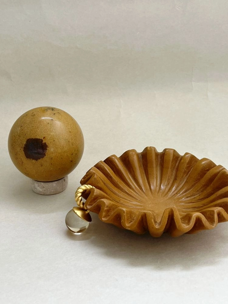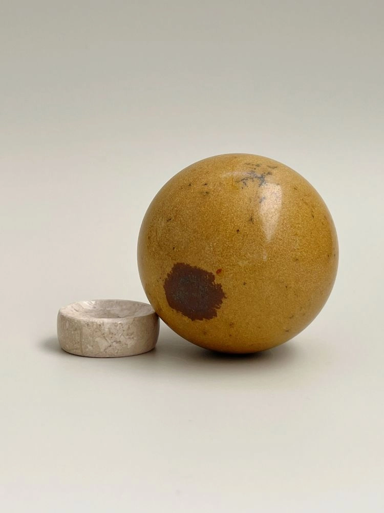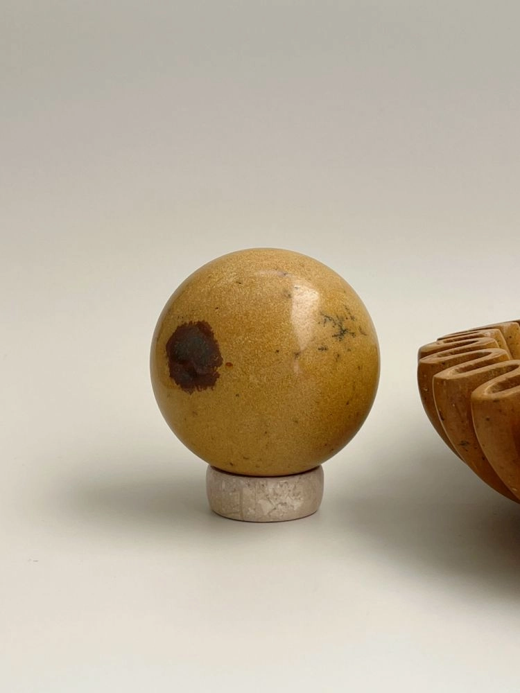 섬세하게 세공된 스피어 형태의 오브제입니다. 무게감있는 스피어를 배색 스탠드에 올려서 연출 할 수 있습니다. 천연 대리석의 비정형적 패턴들이 아름답게 표현되어 공간에 예술적 무드를 더해줍니다.