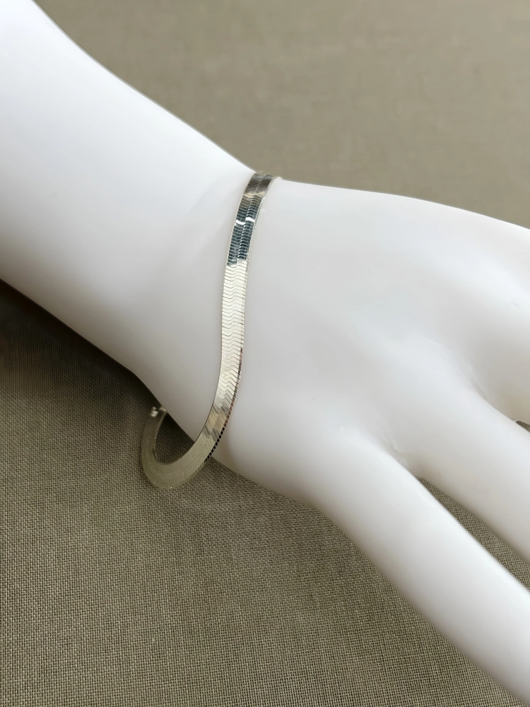 이탈리아 디자인의 오리지널리티를 간직한 타임리스한 헤링본 체인 팔찌입니다. 평평한 헤링본 패턴으로 섬세하게 결합되었으며 흐르는 듯한 착용감으로 가볍게 밀착되어 은은하게 반짝입니다. 단독으로 착용하거나 다른 악세서리와 레이어드하여 자신만의 스타일을 연출할 수 있는 에센셜 아이템입니다. 고품질의 이탈리안 925 스털링 실버로 제작되었습니다.